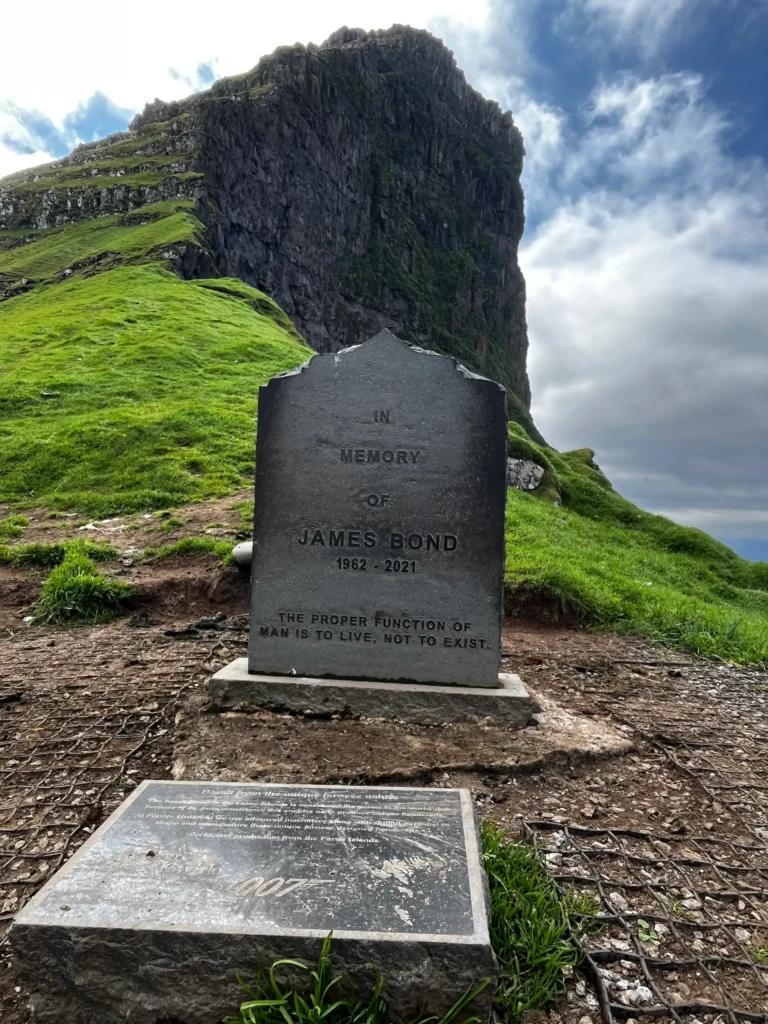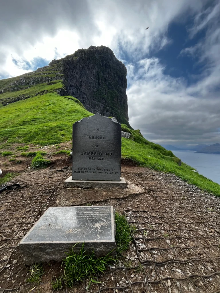 A aproximadamente 300 metros do farol, ergue-se imponente, a rocha Nestindar, cujo cume atinge 788 m de altitude. E é ali, sobre o platô rochoso, que James Bond encontrou o seu destino, no filme “Sem Tempo para Morrer”. Nesse cenário dramático, cercado por penhascos vertiginosos que despencam no mar, repousa a lápide cenográfica, deixada como memorial simbólico do fim do espião mais famoso do cinema, o “007