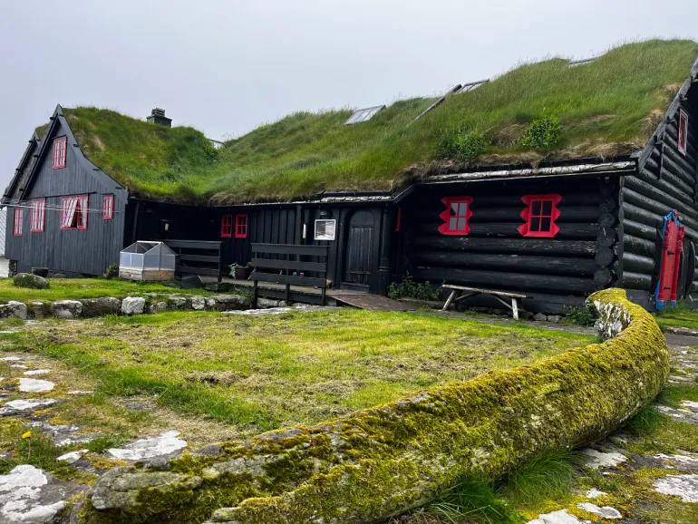 Kirkjubour, na ilha de Streymoy, é o mais antigo e histórico dos povoados Faroenses. Ali, entre ruínas medievais e casas seculares, a grama cobre os telhados como um manto vivo, espelhando um passado longínquo.