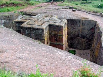 Mas existe um lugar, o único no mundo, onde 11 igrejas foram escavadas em rocha no século XIII, a partir do solo para baixo, ou seja, as edificações ficam abaixo do nível da terra. A área era demarcada e fossos profundos de até 13 metros foram cortados ao redor livrando um gigantesco monólito, onde era esculpida a igreja.