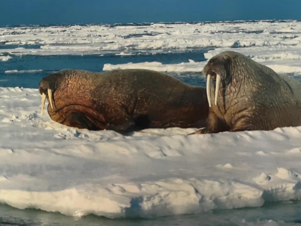 E se a vida em terra já impressiona, o mar é um espetáculo à parte. Ali, está uma das maiores concentrações de Morsas do planeta. As morsas, uma espécie de elefante marinho, são famosas pelos longos “caninos”, corpo avantajado e comportamento coletivo.